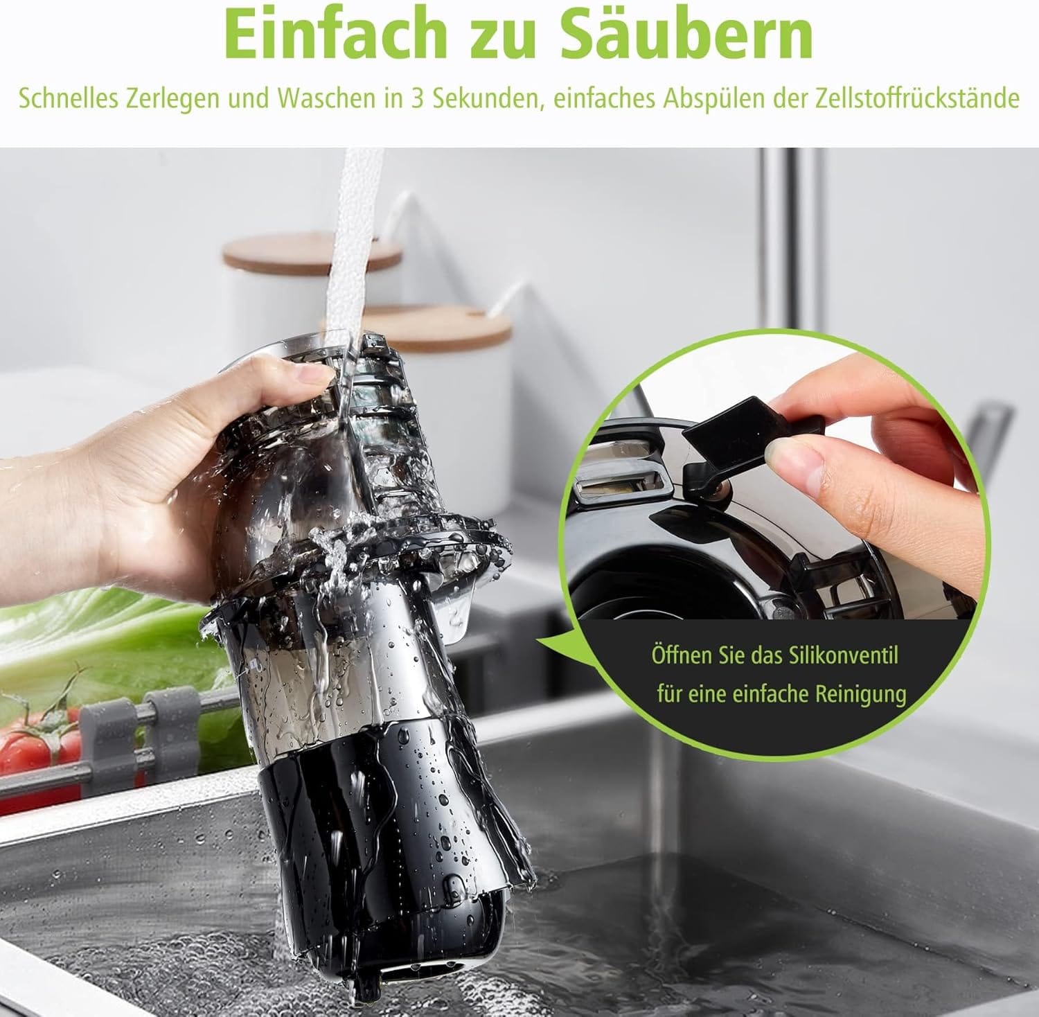 🔹 Maistui saugios medžiagos – visos nuimamos dalys pagamintos iš aukštos kokybės, BPA-free medžiagų, užtikrinančių saugų ir sveiką sulčių spaudimą.