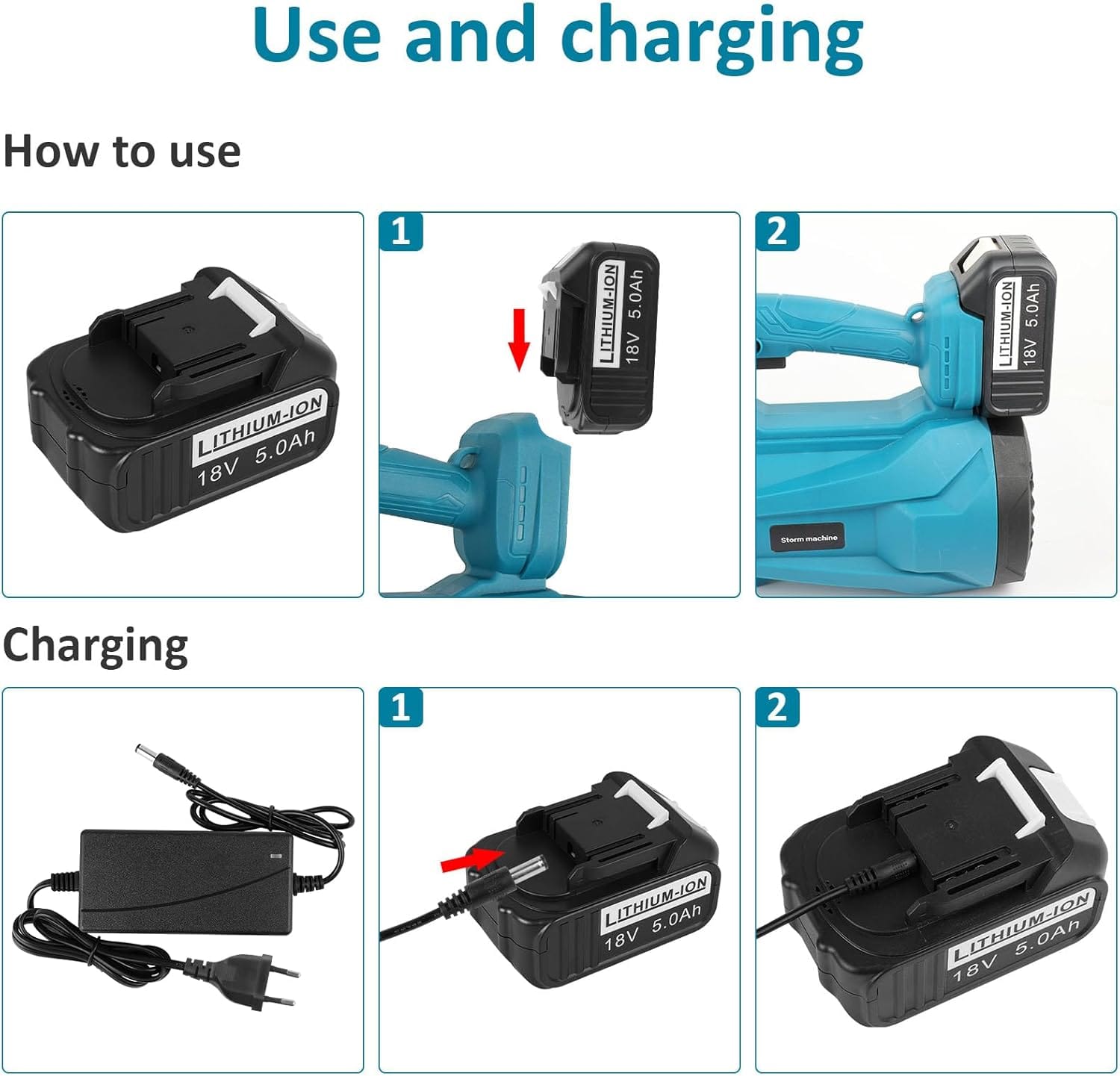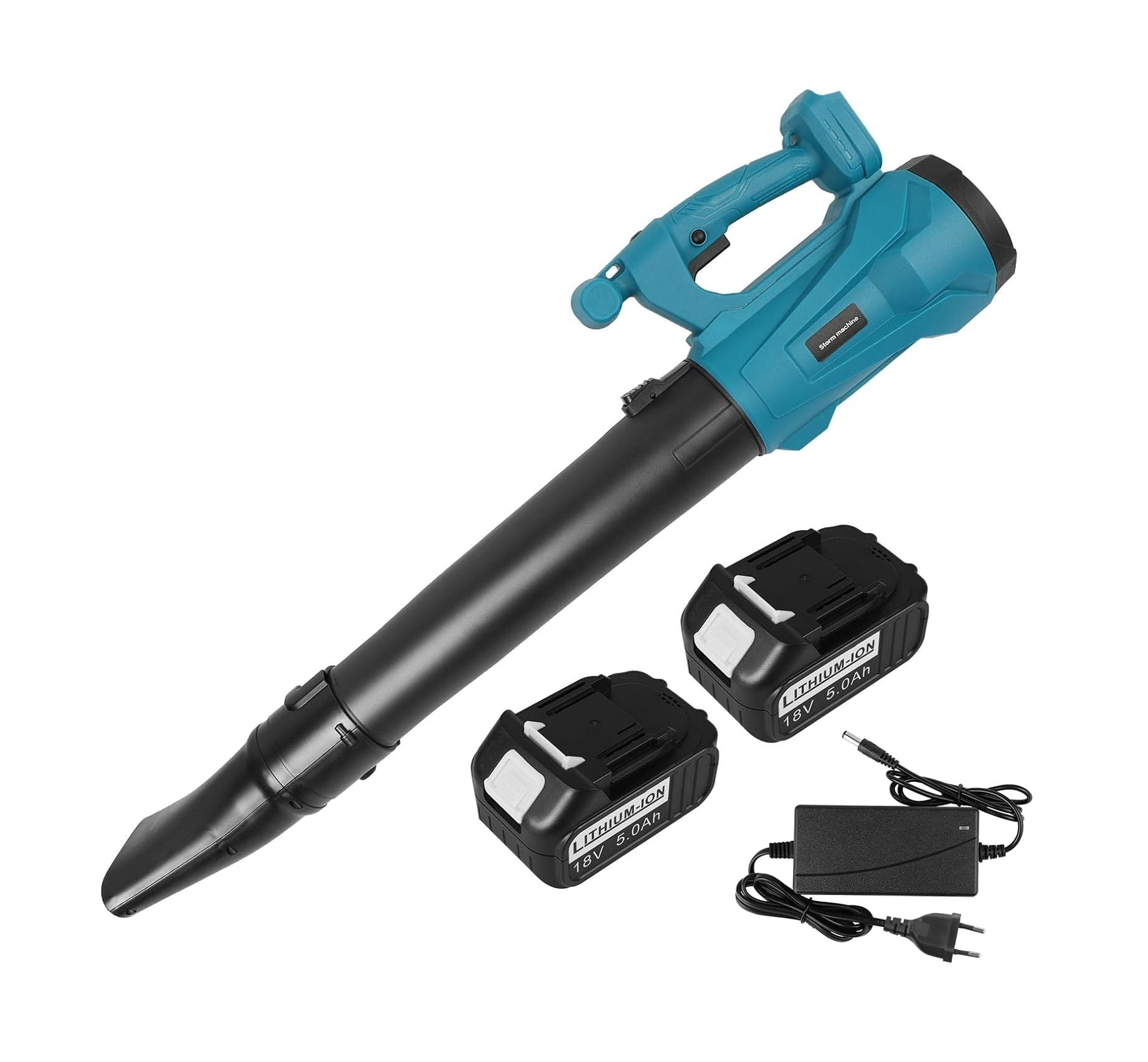 Akumuliatorius: Komplektuojamas su dviem 18V 5,0 Ah ličio jonų baterijomis ir greituoju įkrovikliu, suteikiančiu ilgą veikimo laiką be apribojimų.