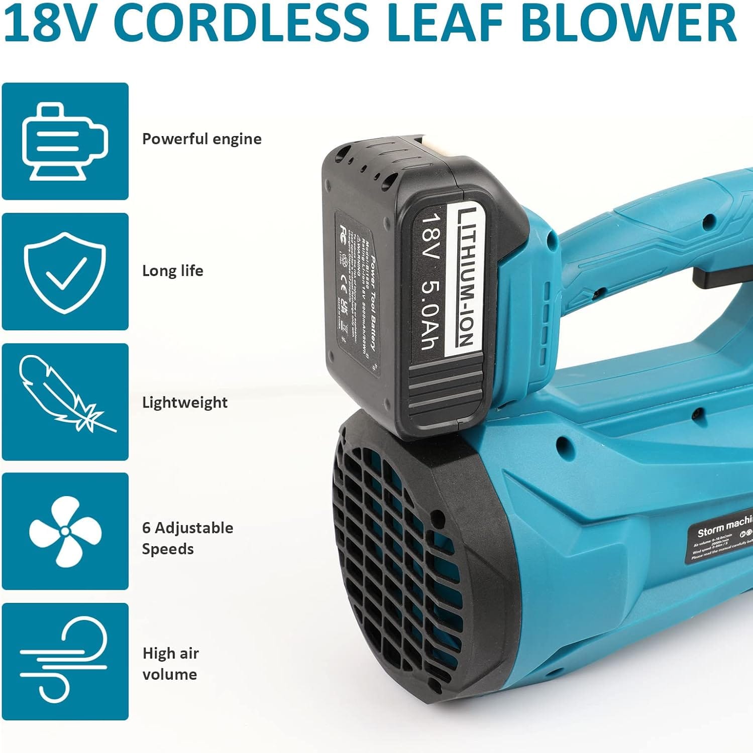 Oro tūris: Užtikrina iki 450 CFM (kubinių pėdų per minutę) oro tėkmę, kas padeda greitai atlikti kraštovaizdžio priežiūros darbus.
