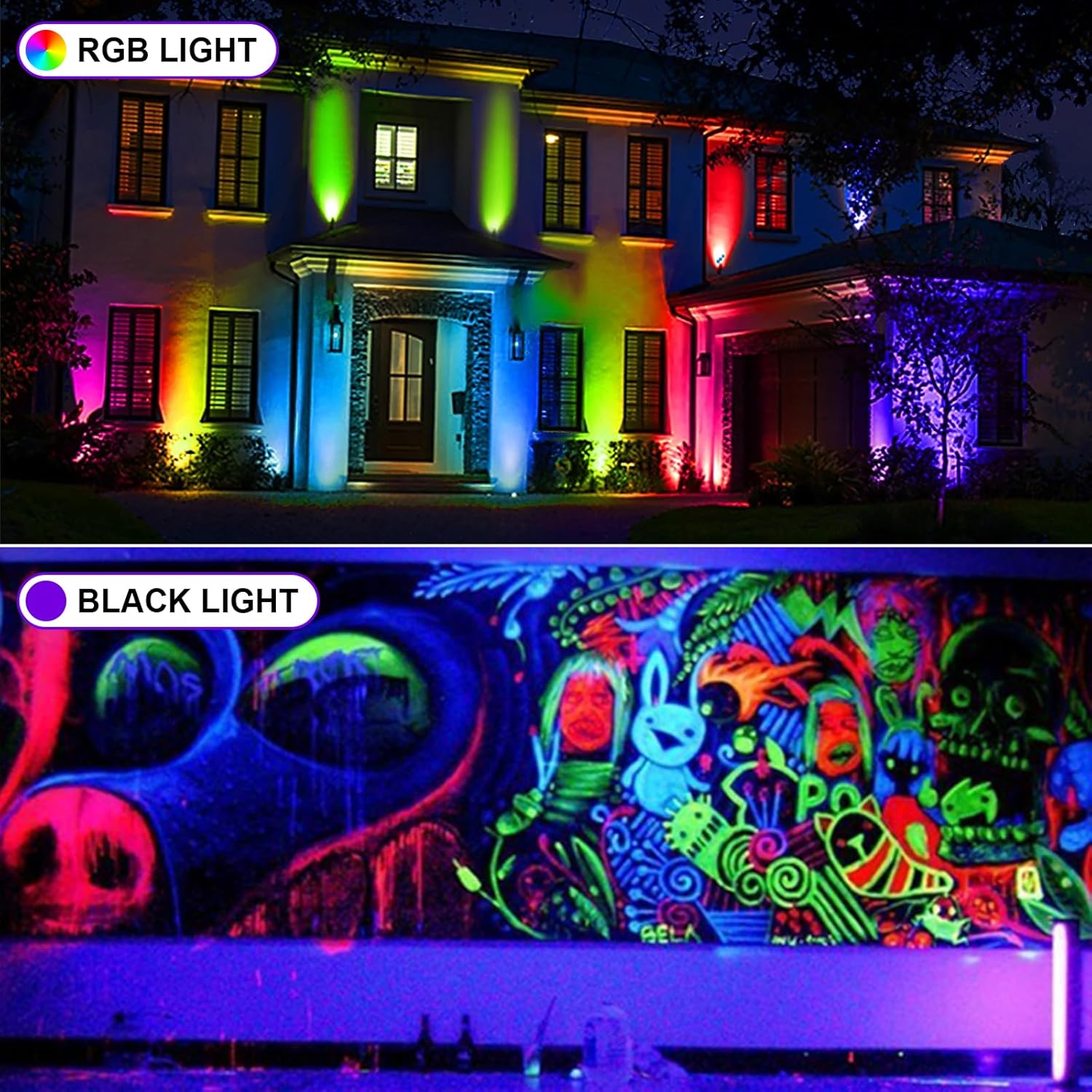 UV ir RGB apšvietimas: ši 2 viename LED prožektorius sujungia UV šviesos savybes su RGB prožektoriumi. Jis lengvai patenkina įvairių erdvių apšvietimo poreikius: švytintys vakarėliai, fluorescencinis dažymas, gimtadieniai, vestuvės, scenos apšvietimas, klubai, diskotekos, vakarėliai, Kalėdos, Helovinas.