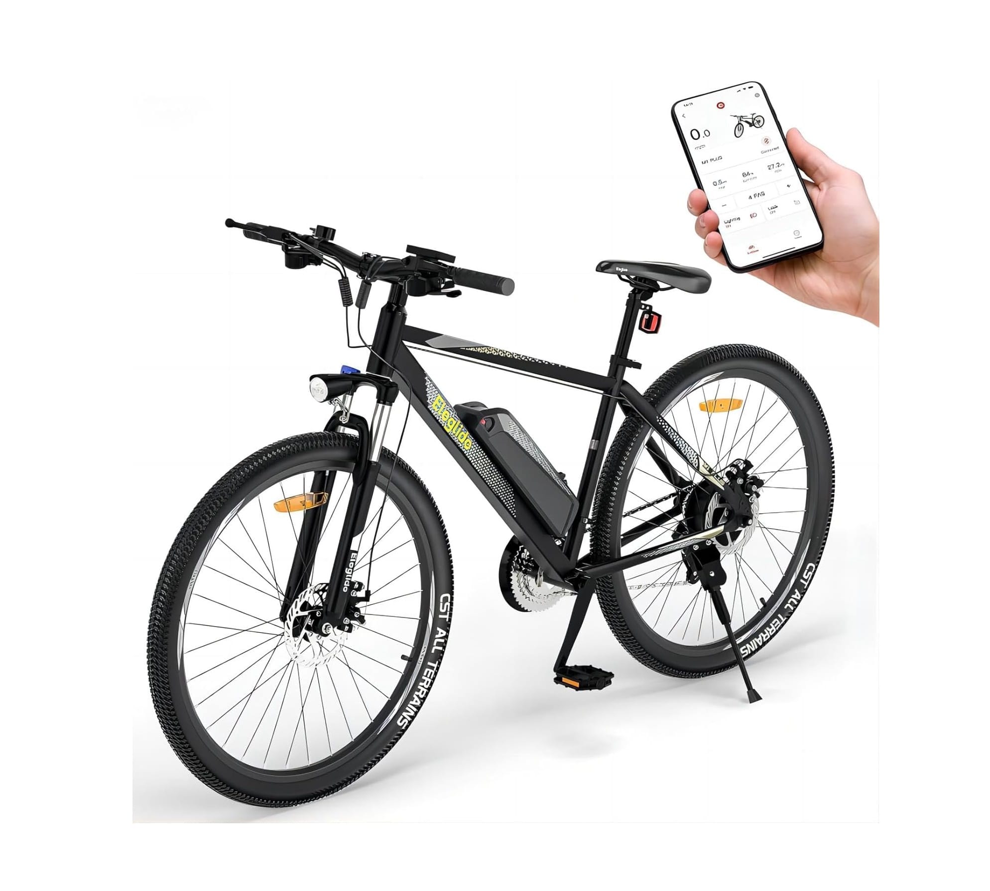 Eleglide M1 Plus elektrinis kalnų dviratis – 250 W galingas variklis, nuimama 36 V 12.5 Ah baterija, iki 100 km nuvažiuojamas atstumas elektrinės pagalbos režimu. Shimano 21 pavarų sistema, priekinė amortizacija, dvigubi diskiniai stabdžiai ir LED apšvietimas užtikrina saugumą ir komfortą. Išmanus LCD ekranas ir „Eleglide“ programėlė leidžia valdyti šviesas, pagalbos lygius, užrakinti dviratį ir stebėti maršrutus. Pagamintas iš lengvo aliuminio lydinio, 90 % surinktas iš anksto, tinkamas tiek nuotykiams, tiek ilgoms kelionėms.