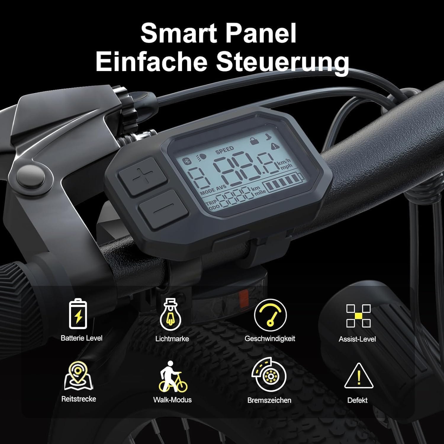 👉 Amortizacija, stabilumas ir saugumas: Dviratis atitinka Vokietijos kelių eismo licencijavimo reglamentus, turi LED apšvietimą ir atspindinčias padangas. Dvigubi diskiniai stabdžiai užtikrina maksimalų stabdymo efektyvumą. Važiuojant nelygiais keliais, priekinė amortizacija su fiksavimo funkcija suteikia švelnesnį ir patogesnį važiavimą.
