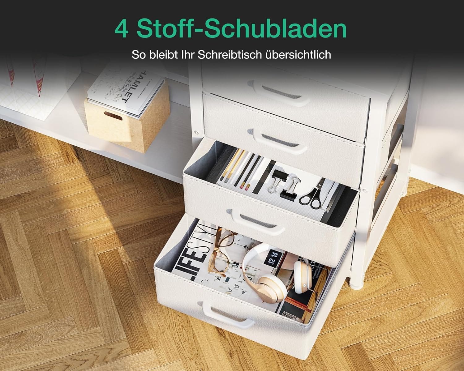 ✅ 4 stalčiai ir papildomos lentynos – pakankamai vietos dokumentams, knygoms ar reikmenims laikyti, palaikant tvarką darbo erdvėje.