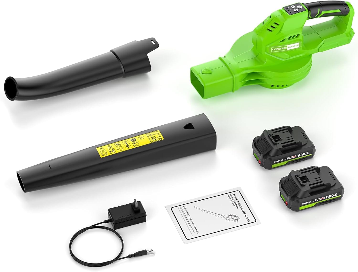 SEYVUM akumuliatorinis lapų pūstuvas su dviem 2,0 Ah baterijomis ir įkrovikliu