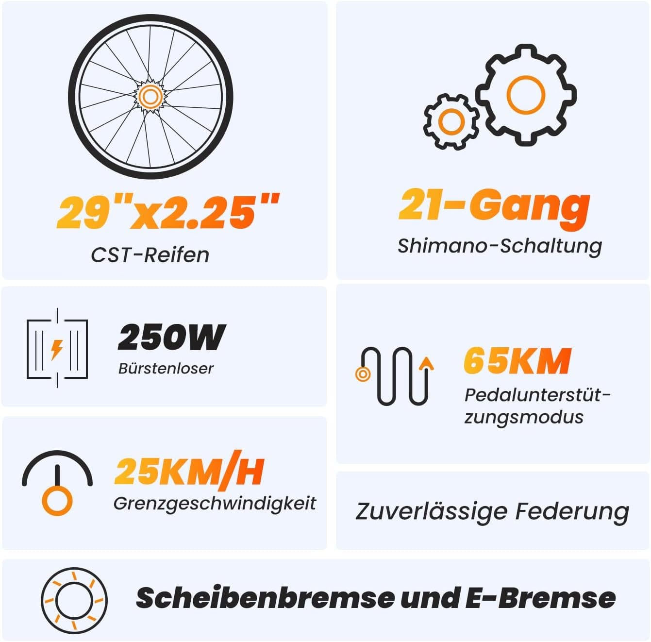 Galia: 250 W galinis stebulės variklis su 45 N·m sukimo momentu leidžia pasiekti maksimalų 25 km/h greitį. Nuimama 13Ah baterija suteikia iki 65 km nuvažiuojamą atstumą elektrinės pagalbos režimu, todėl dviratis puikiai tinka tiek kalnų nuotykiams, tiek miesto keliams.