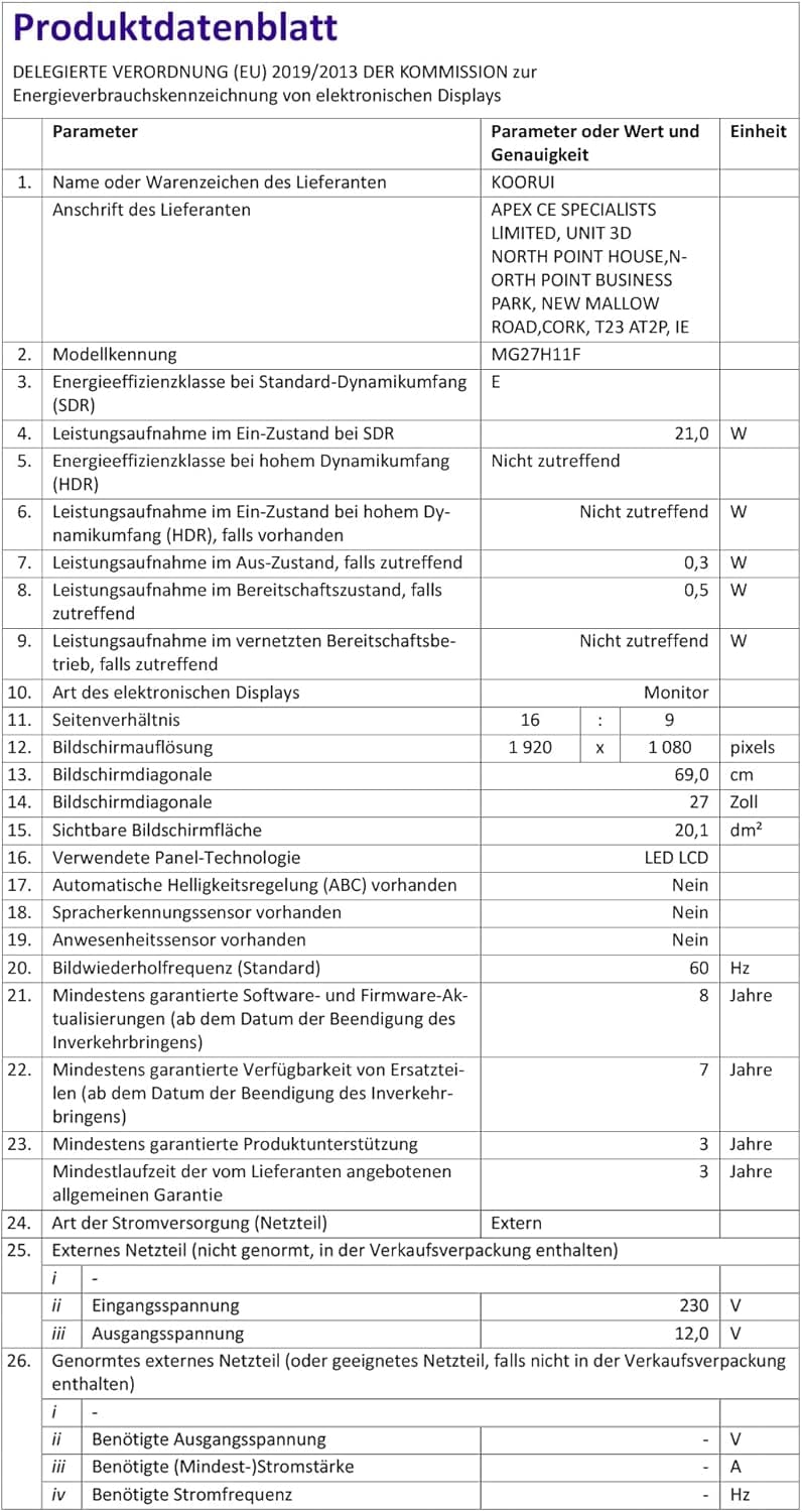 KOORUI žaidimų monitorius 27 colių, 165 Hz, Full HD (1920 x 1080), IPS